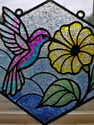 In this workshop, participants are supplied with a variety of crushed glass shades and resin. The session includes distinctive acrylic cutouts in shapes serving as the canvas for the artwork. Attendees will learn how to arrange and adhere these vibrant pieces onto the acrylic designs. This hands-on experience provides a relaxing and therapeutic environment. The design consists of a 12" acrylic cutout, with options including a Bee, Hummingbird, Dragonfly, Gnome, Ladybugs, Dragon, Unicorn, Fairy, Rose and Butterfly.