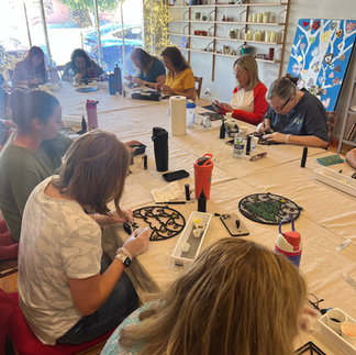 In this workshop, participants are supplied with a variety of crushed glass shades and resin. The session includes distinctive acrylic cutouts in shapes themed around Fall, Halloween, Winter, Hanukkah, and Christmas, serving as the canvas for the artwork. Attendees will learn how to arrange and adhere these vibrant pieces onto the acrylic designs. This hands-on experience provides a relaxing and therapeutic environment. The design consists of a 12" acrylic cutout, with options including a Fall Pumpkin, Hanukkah Dreidel, Menorah, Snowflake, Christmas Tree, and Christmas Angel.